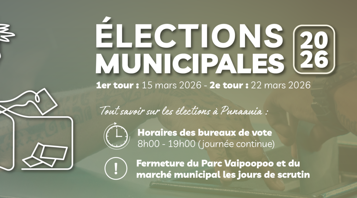 En mars 2026, les électeurs sont invités aux urnes pour élire le conseil municipal de Punaauia. Le premier tour aura lieu le dimanche 15 mars 2026 En cas de second tour, il aura lieu le dimanche 22 mars 2026 À Punaauia, les bureaux de vote seront ouverts de 8h à 19h,...