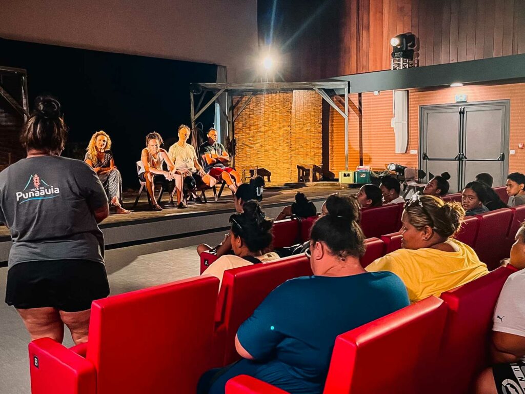 Dans le cadre d’une action en faveur de l’accès à la culture, 62 adolescents et adultes issus des quartiers prioritaires de Punaauia ont été invités à découvrir le théâtre en assistant à la représentation de la pièce » Keishi « .
