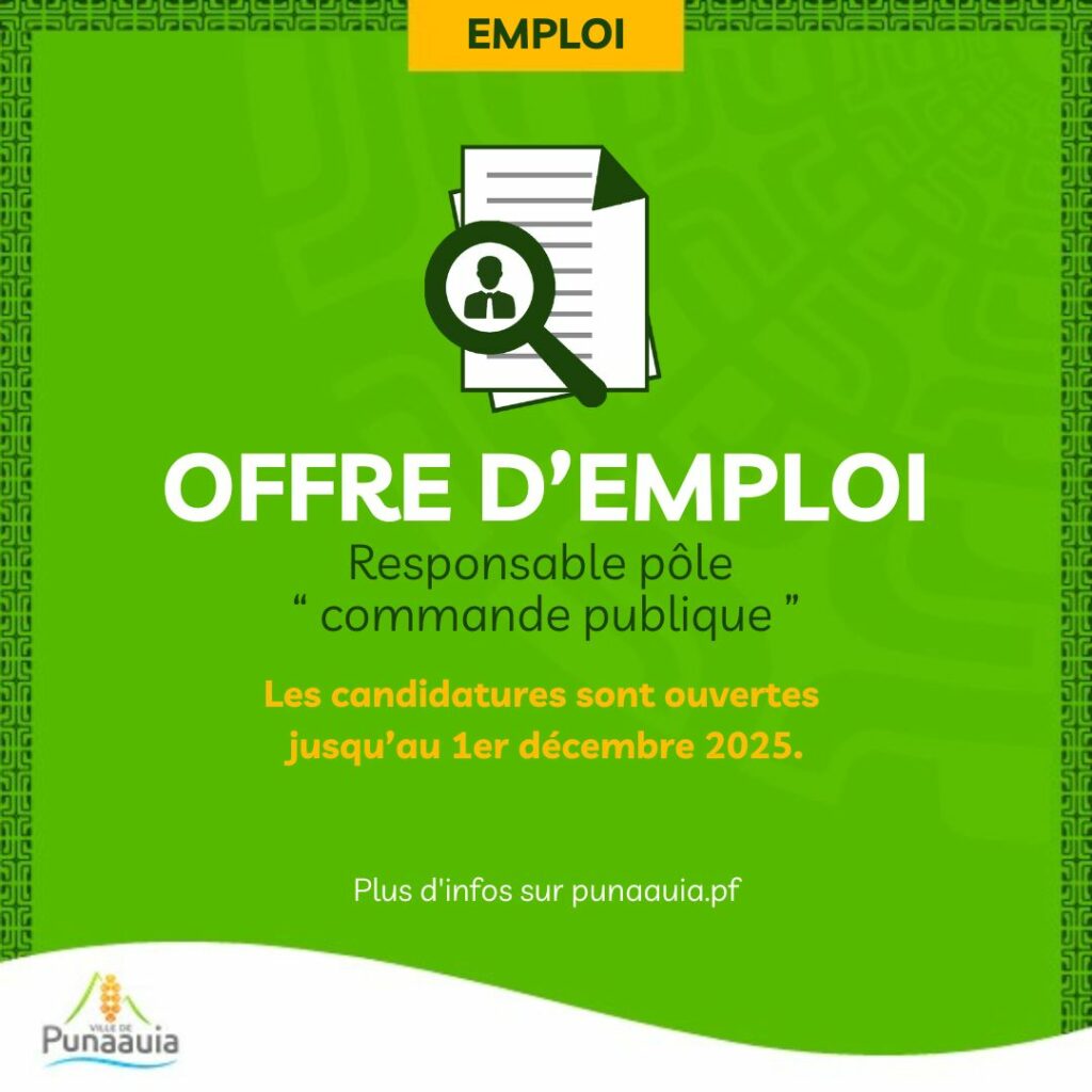 La Ville de Punaauia recrute un Responsable du pôle » commande publique » (marchés publics).
