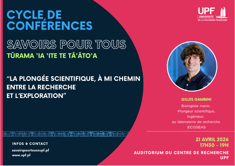 Le Mardi 21 avril 2026 de 17h30 à 19h30 à l’université de la Polynésie française (Auditorium du centre de recherche)
