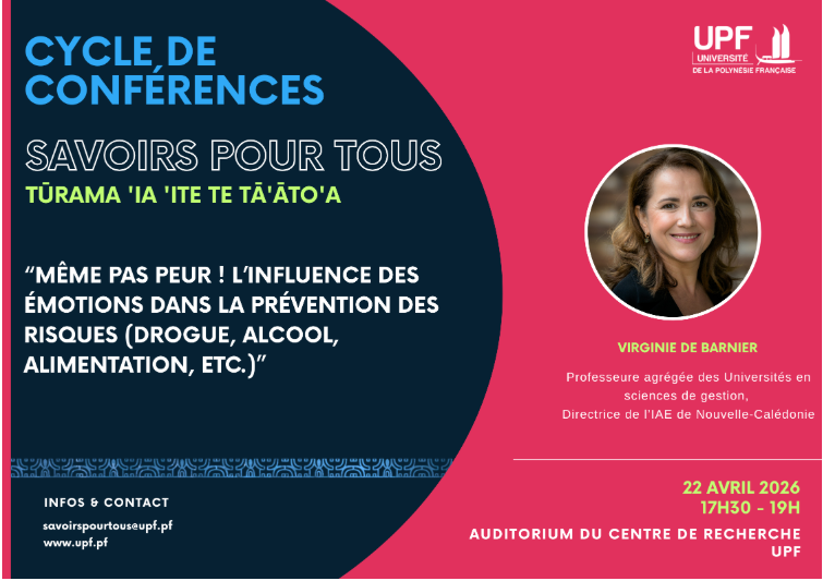 Le Mercredi 22 avril 2026 de 17h30 à 19h30 à l’université de la Polynésie française (Auditorium du centre de recherche)